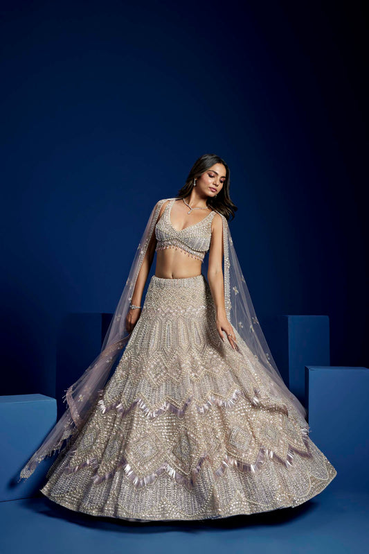 SILVER AND MAUVE ALESSIA LEHENGA SET