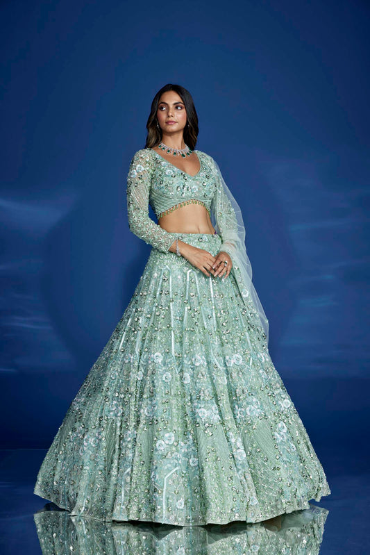 LIGHT OLIVE GREEN CELESTINE LEHENGA SET