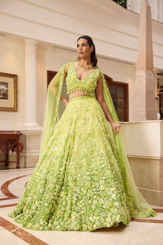 LIME GREEN OMBRE STELLA LEHENGA SET