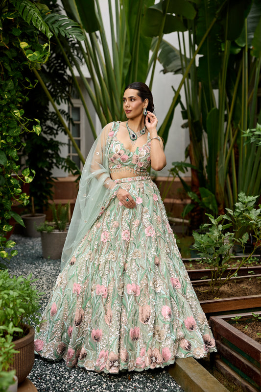 PASTEL MINT GREEN MULTICOLOUR DAPHNE LEHENGA SET