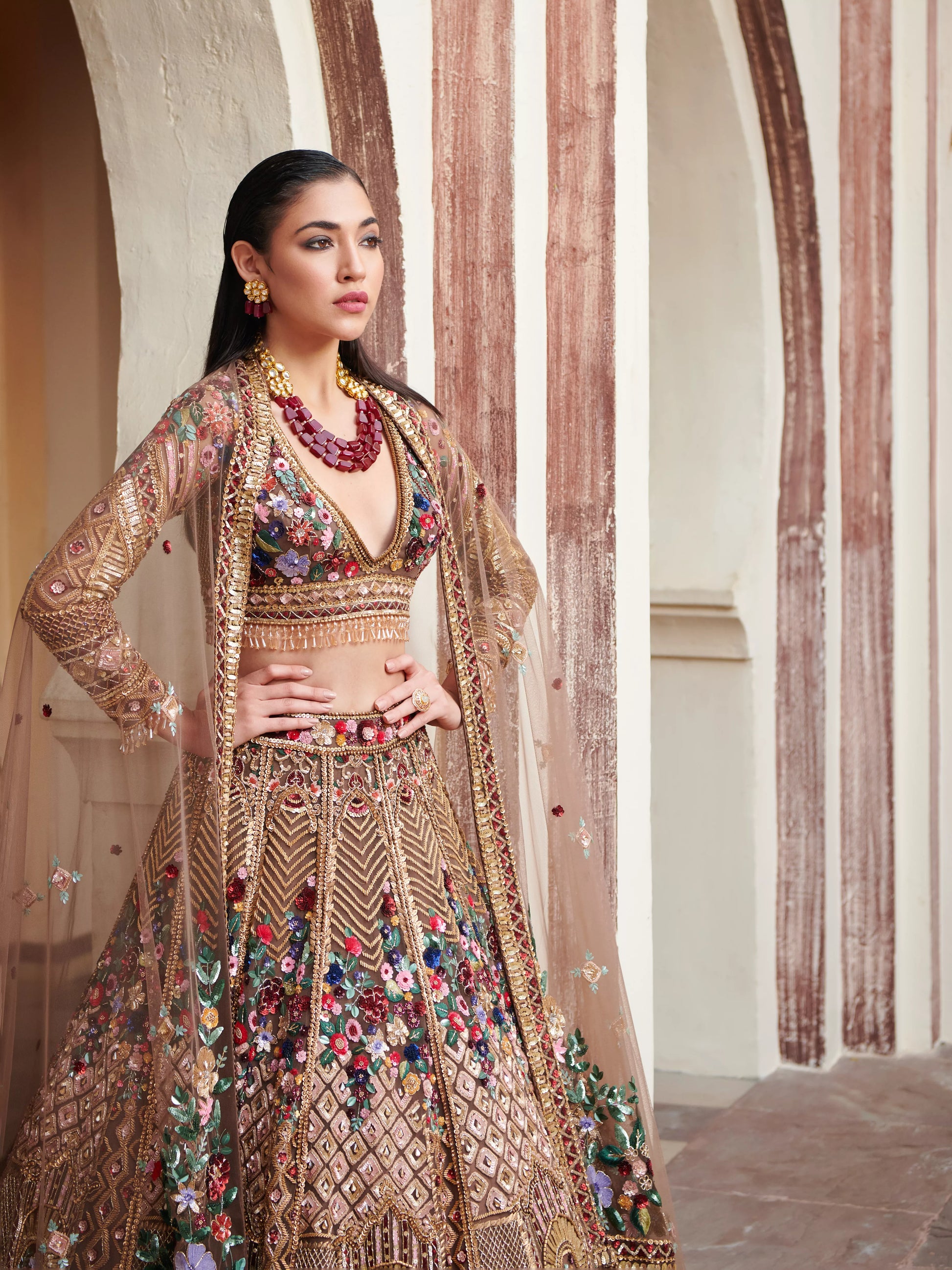 BROWN AND GOLD ARSIA BRIDAL LEHENGA SET