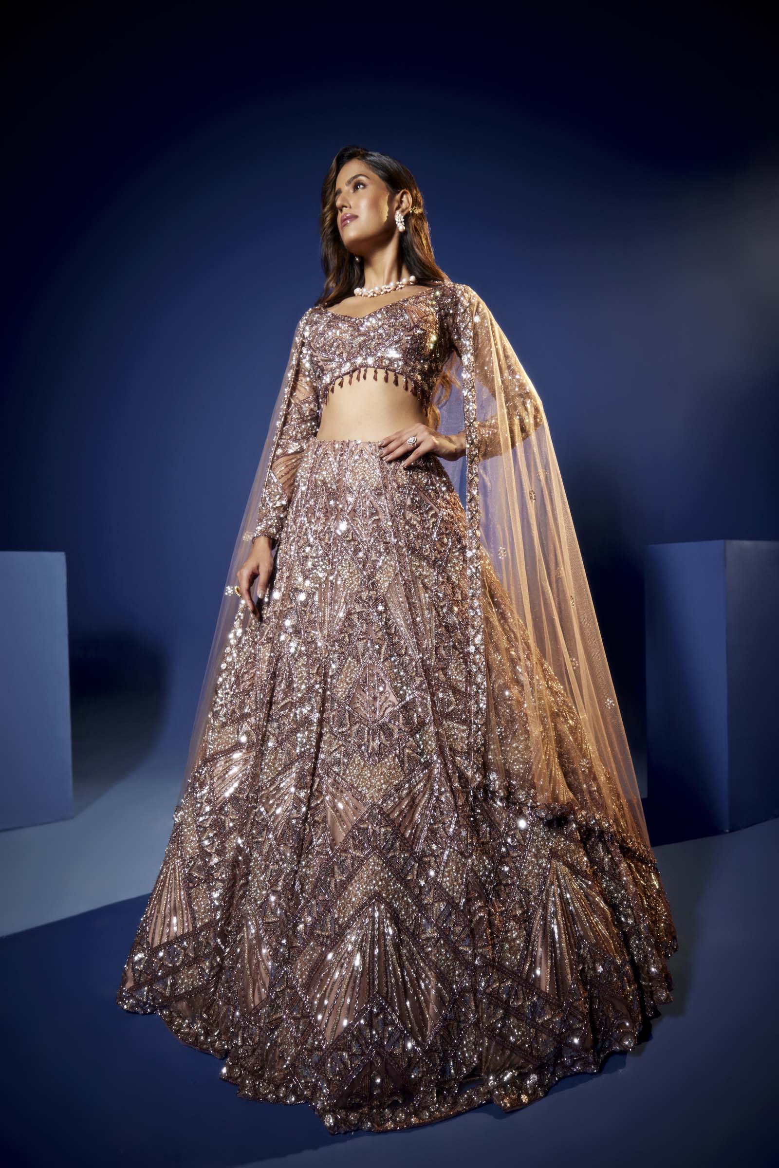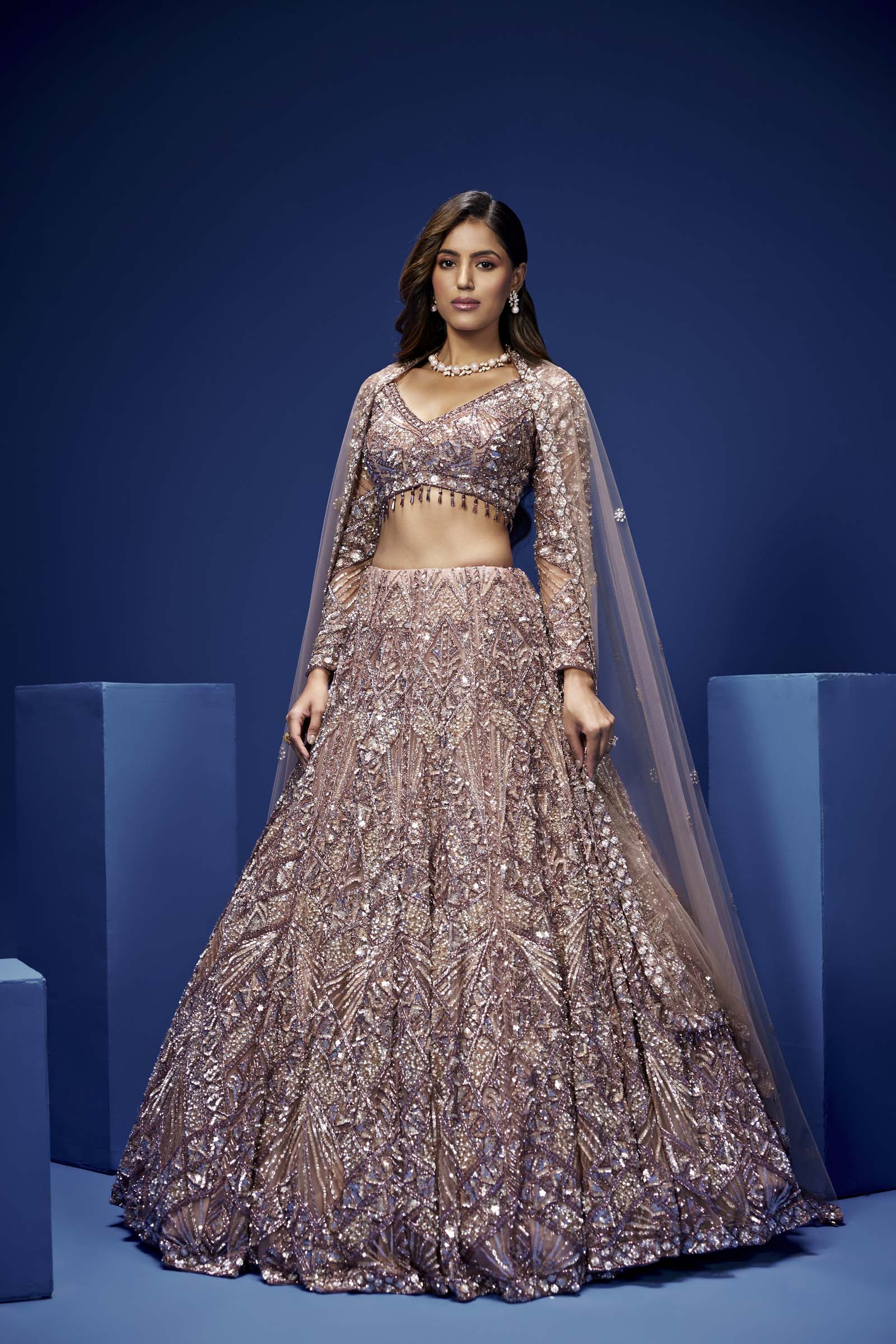 BURGUNDY AND SILVER SELENE LEHENGA SET