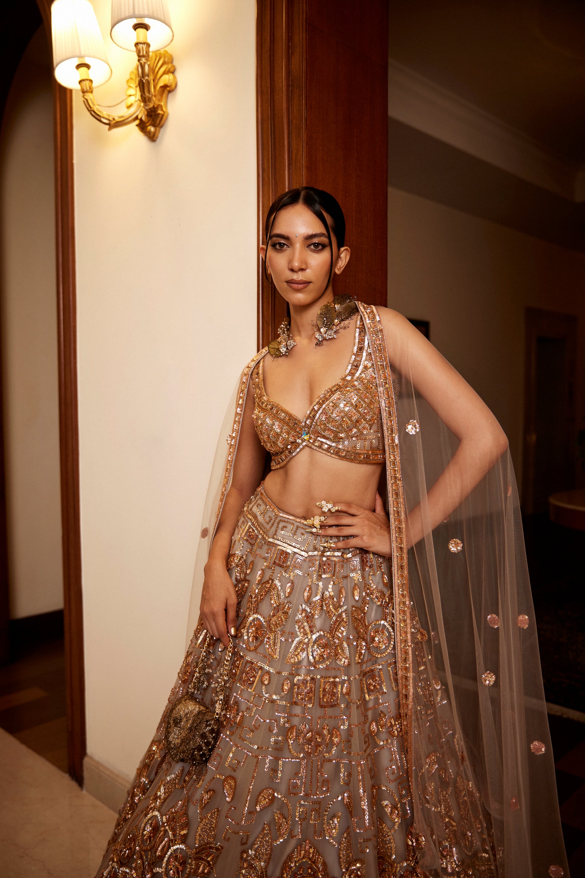 GREY GOLD LEHANGA BLOUSE DUPATTA