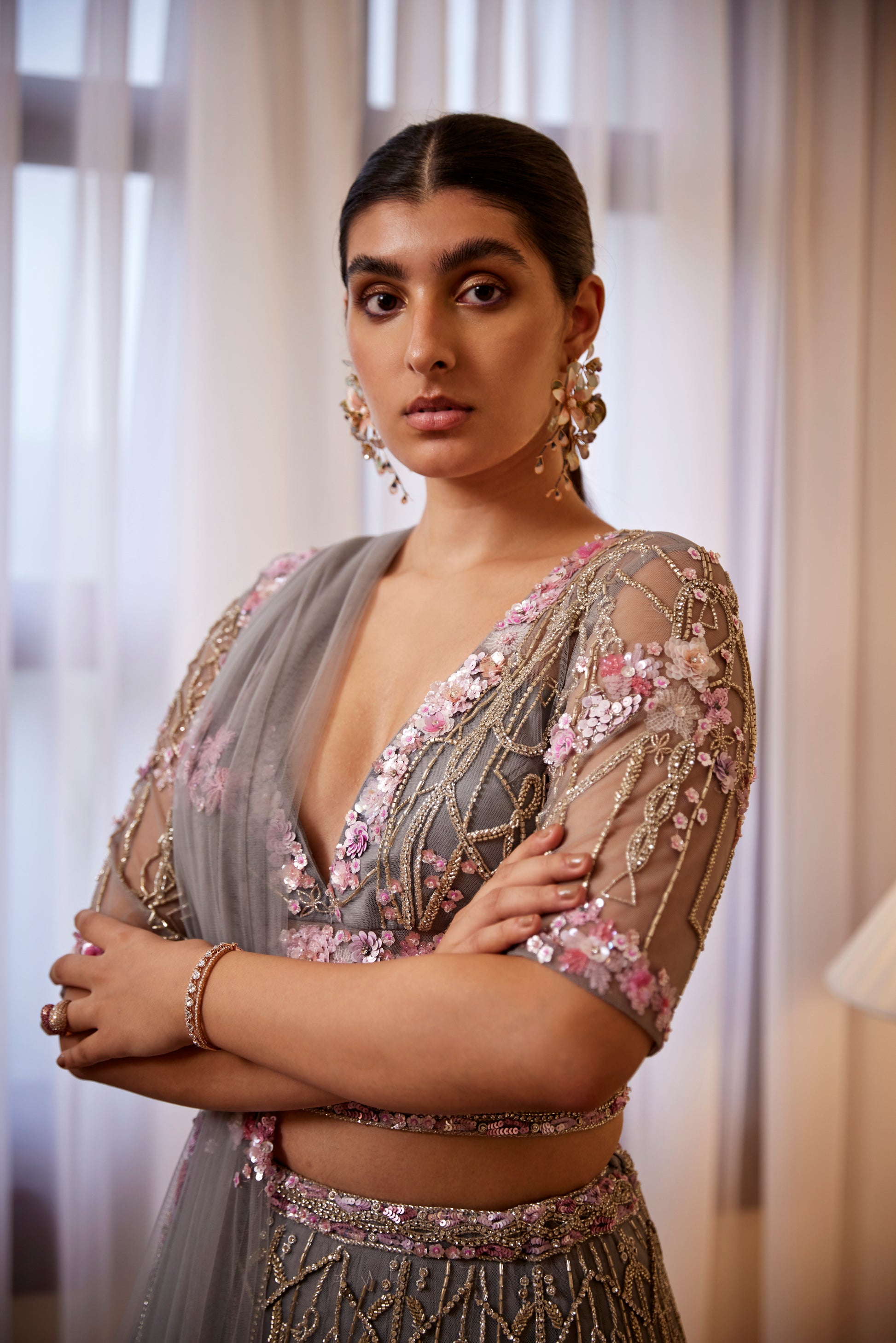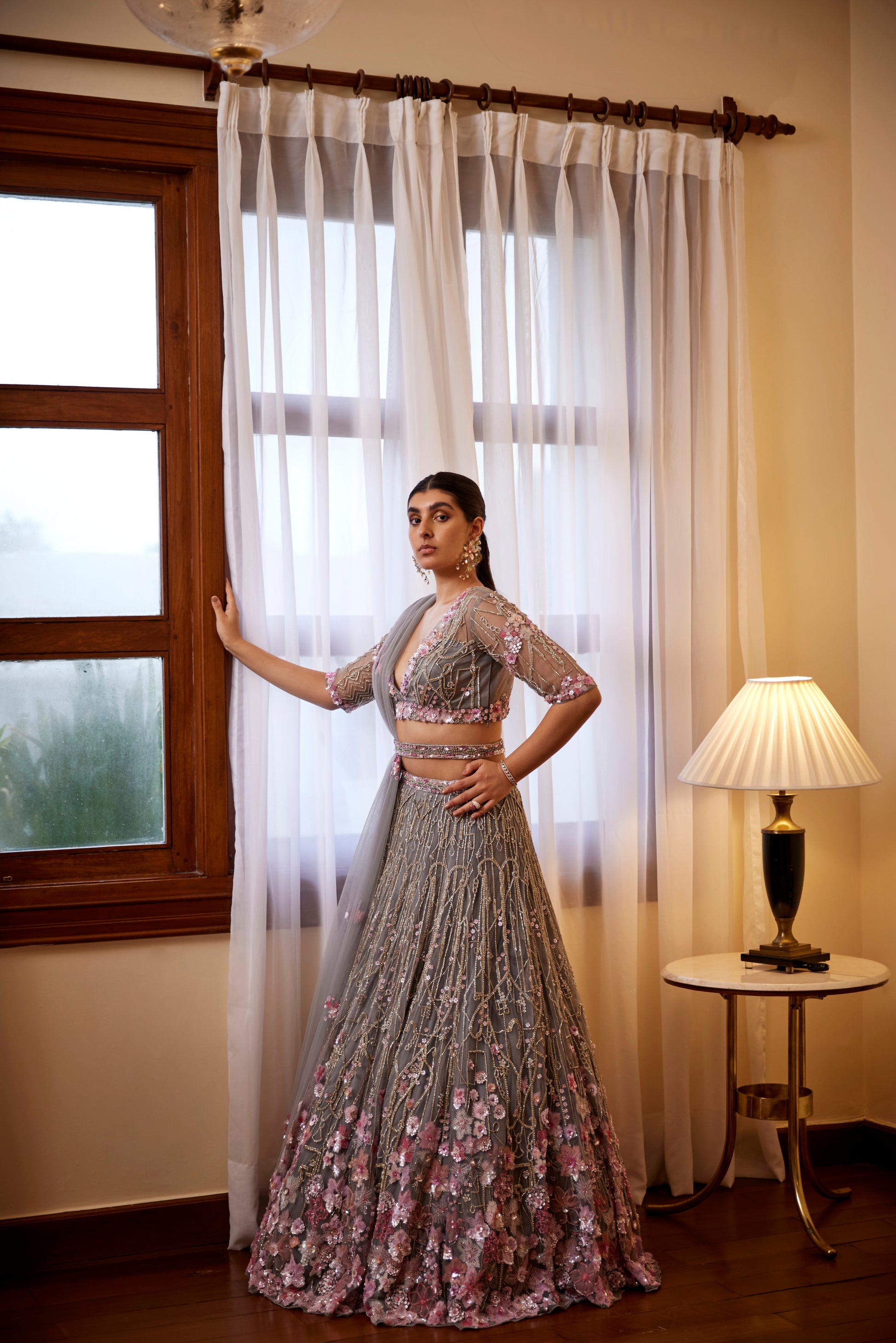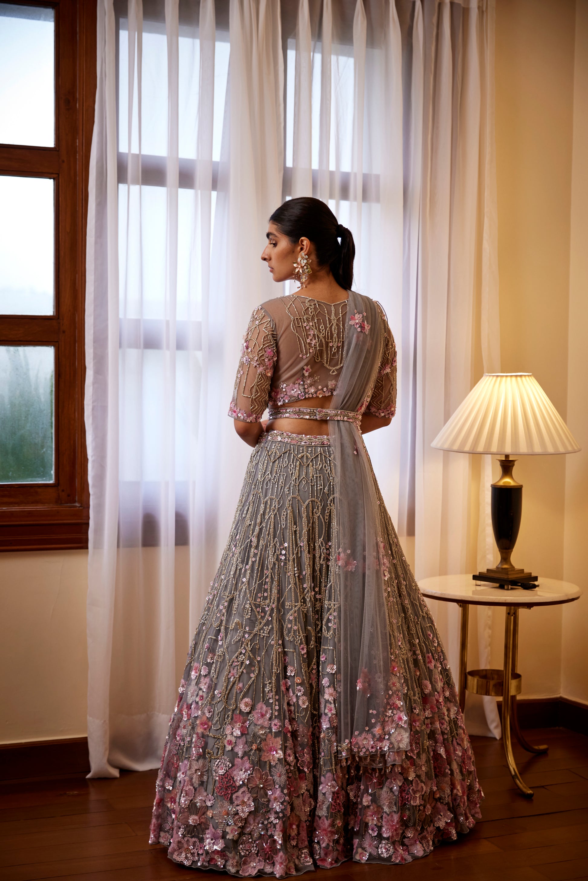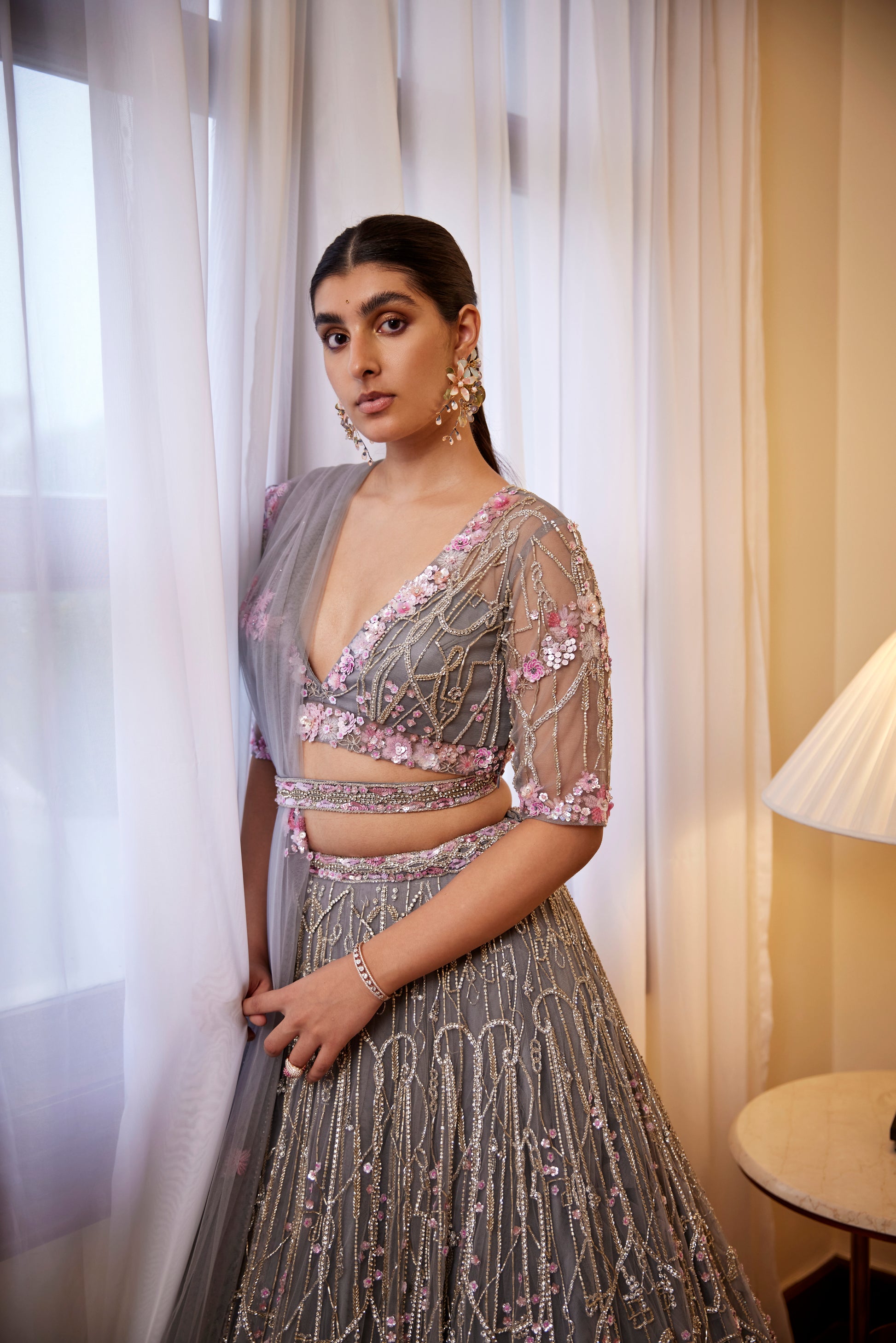 GREY PINK LEHANGA BLOUSE DUPATTA