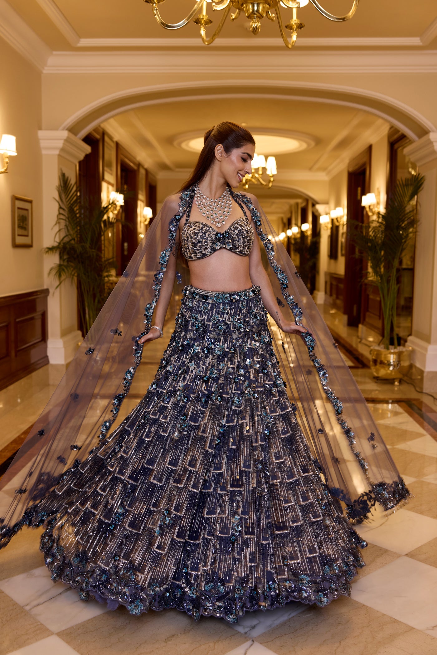 MIDNIGHT BLUE YASMINE LEHENGA SET