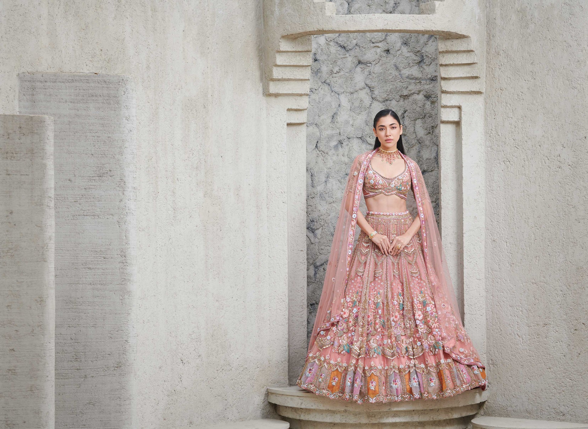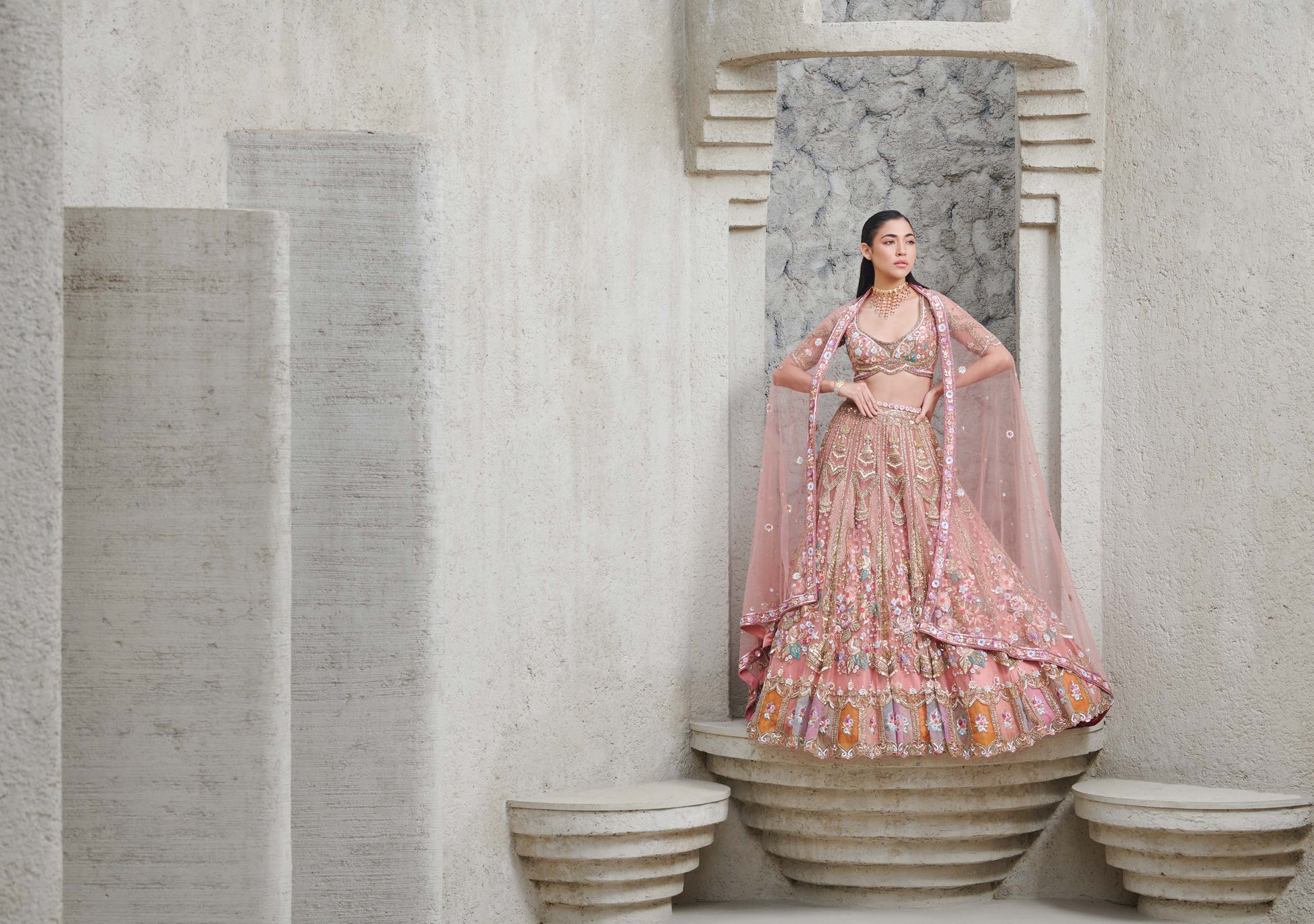 PEACH AND GOLD SHAHNAZ BRIDAL LEHENGA SET